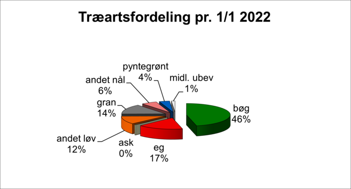 Som det ses af træartsfordelingen dyrkes også andre træarter. Efter orkanen den 3. december 1999 er Stiftelsens skovbrug på vej til i endnu højere grad at blive et løvtræskovbrug med en af landets højeste andele af løvtræ. Vort varemærke er et intensivt skovbrug med frembringelse af kvalitetsløvtræ som målsætning.